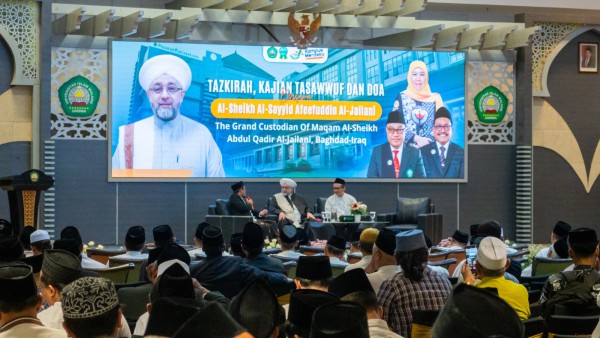 MALANG, insidepontianak.com – Universitas Islam Malang (Unisma) mendapat kehormatan atas kedatangan ulama terkemuka asal Baghdad, Irak, Sheikh Al-Sayyid Afeefuddin Al-Jailani, dalam kegiatan Tazkirah, Kajian Tasawuf dan Doa Bersama yang digelar di Gedung Pascasarjana Unisma, Senin (28/4).