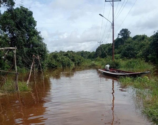 "Air sudah naik ke jalan dan menghambat aktivitas warga. Untuk sementara, rumah warga masih aman, air belum masuk," kata Kepala Dusun Senipahan, Ambay.