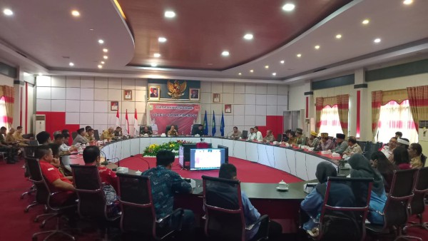 SANGGAU, insidepontianak.com -- Pemerintah Kabupaten Sanggau menggelar rapat koordinasi (Rakor) bersama jajaran pejabat Forkompimda, Forkopimcam, pimpinan Ormas lintas etnis dan agama dan organisasi mahasiswa dalam rangka menyikapi perkembangan situasi dan kondisi daerah di tengah aksi unjuk rasa yang terjadi di berbagai wilayah di Indonesia.